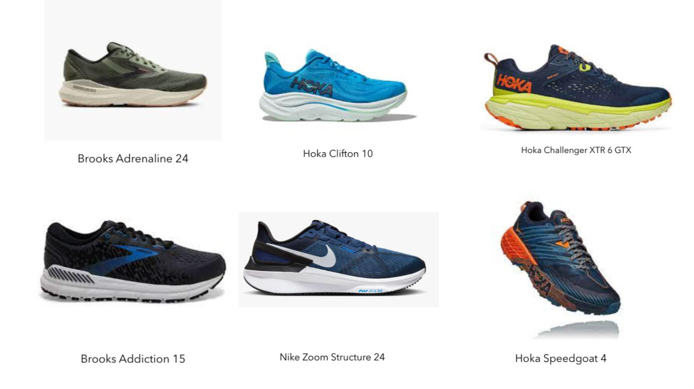 Includes cushion, stability, and trail shoes.