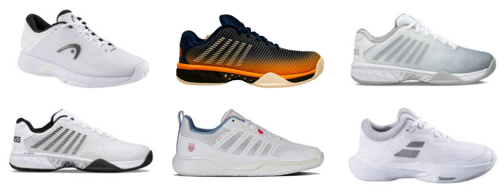 We offer a tailored selection from top brands such as K-Swiss, Babolat, New Balance, Head, and Ascis.