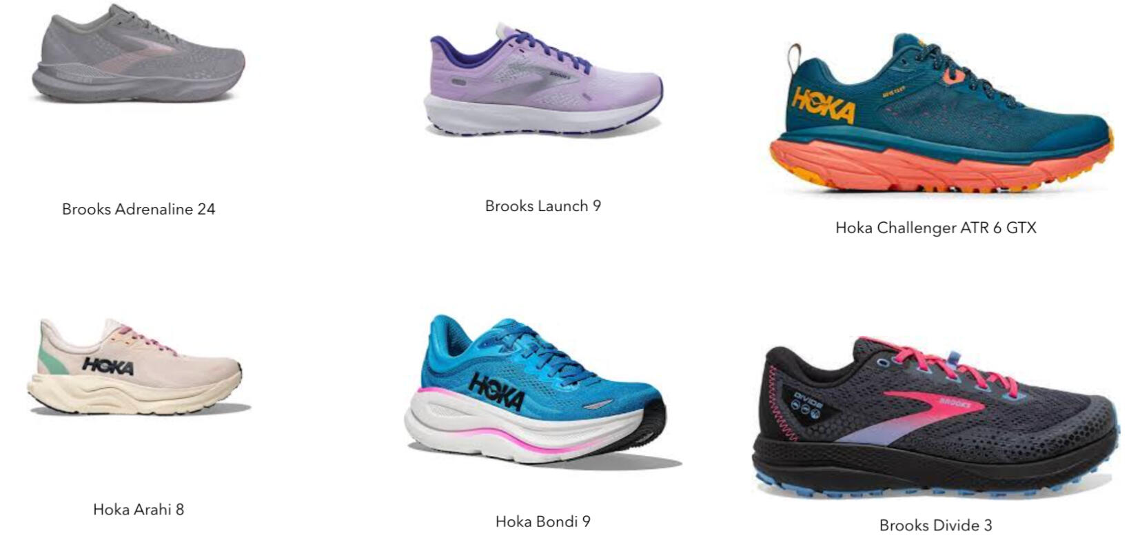 Includes cushion, stability, and trail shoes.