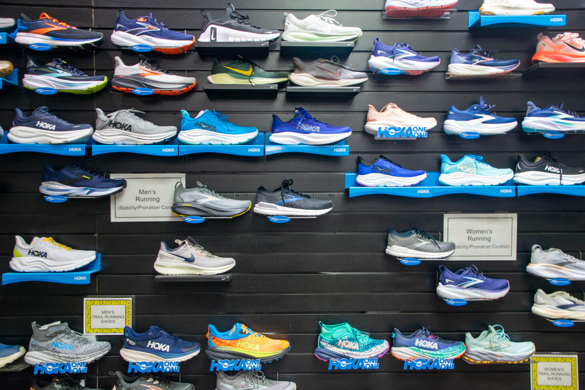 We offer a tailored selection from top brands such as Brooks, Hoka One One, Asics, New Balance, and Nike.